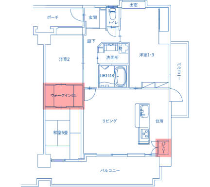 お母さんの和室とお父さんの部屋の間に収納力の高いWICを設置。WICで両部屋を行き来できるのもこだわりのポイントです。